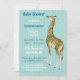 Girafa de época sobre fondo amarillo con tonos azules y blancos.