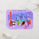¡Estas invitaciones de Fiesta de Navidades Tropicales de personalizable retro son lo suficientemente festivas como para alegrar el panorama de las vacaciones! El diseño personalizado presenta el tipo de fiesta de vacaciones extremadamente sofisticadas que normalmente sólo se ve en películas de Navidades de los años 60. Hay una sala de estar moderna de mediados de siglo llena de gente de fiesta que disfruta de una decoración marrón y violeta. Una encantadora mujer con el uniforme de criada francesa lleva una bandeja de martinis. Ella está parada al lado de una chimenea roja de cono con un fuego ruidoso. Tres medias verdes están colgadas por la chimenea mojada con cuidado. En el centro de la sala, una pareja muy agradable está instalada en sillas de huevo naranja. La mujer lleva un vestido verde festivo. El hombre está usando un traje negro con corbata roja. Cada uno sostiene un martini. Otra pareja se está volviendo acogedora debajo de una araña colgante, amarilla y sputnik. El distinguido caballero de pelo gris lleva puesto un traje azul, camisa azul claro y corbata roja. También está usando un sombrero de Papá Noel y sosteniendo un martini en cada mano, mostrando al mundo que sus días de fiesta están lejos de terminar. Su compañero es una rubia con un vestido rojo impresionante. El Sr. Distinguished debería mirar hacia afuera porque ella está sosteniendo un sorbo de mistletoe en su mano. Delante de la habitación hay un árbol de Navidad kitsch y rosa, con adornos verde azulados y una estrella amarilla. Detrás de esta escena, podemos ver a través de las paredes de cristal del suelo al techo. El escenario exterior cuenta con una piscina redonda de color turquesa. Podemos ver la silueta púrpura de una mujer sumergiendo sus piernas en el agua. Entre las paredes de piedra morada, hay siluetas de palmeras decoradas con adornos y lámparas de Navidad. Las siluetas de los bailarines y los asistentes a la fiesta también son visibles. El lado opuesto de la invitación está listo para los detalles de su personalizable. Si hay algo que esto prueba, es que, mientras la gente que vive en casas de vidrio no debería arrojar piedras, ¡definitivamente deberían tirar fiestas!