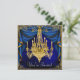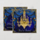 Invitaciones de fiesta con candelabro azul y dorad