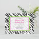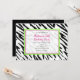 Invitaciones de fiesta con estampado de cebra verde lima y rosa. Personalice para cualquier evento.