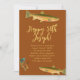 Invitaciones de cumpleaños para hombre adulto para un pescador. Diseño de trucha moteada y señuelo de pesca con mosca en papel de color marrón rojizo con texto amarillo claro. Personalice fácilmente con su nombre, en letra negrita, en la parte superior. Toda la información de la fiesta se agrega en forma de párrafo. Elija opciones de impresión y/o descarga. El reverso es de color amarillo sólido.