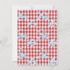 Invitaciones de fiesta de barbacoa y piscina de madera rústica. Características una parrilla roja, bebida afrutada y salpicaduras de agua, la parte trasera tiene un patrón de gingham rojo y más salpicaduras de agua. Ideal para una fiesta de cumpleaños de verano, compromiso o fiesta de graduación de adultos.