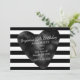 Invitaciones de fiesta de corazón chic de rayas negras y blancas, personalizables para cualquier evento.