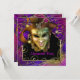 Elegante negro y dorado con invitación a una fiesta de máscaras de rosa intenso y púrpura presenta una máscara dorada de Mardi Gras veneciano completa con campanas sobre un elegante fondo de remolinos dorados y rosa y púrpura. Esta invitación de fiesta de máscaras dorada y púrpura funciona bien para una fiesta de máscaras de Halloween, fiesta de máscaras de dulces dieciséis, fiesta de máscaras de Quinceañera, baile de máscaras, fiesta del Martes de Carnaval, fiesta de Mardi Gras, fiesta de Carnaval, baile de máscaras de graduación, o cualquier otra fiesta de máscaras con tema dorado y rojo y se personaliza fácilmente para su evento simplemente eligiendo el botón naranja "¡Personalízalo!" para comenzar a agregar los detalles de su evento, estilo de letra, tamaño y color de letra, y redacción. Tenga en cuenta