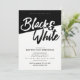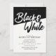 Invitaciones de fiesta de estilo moderno en blanco y negro. Las invitaciones de fiesta modernas y elegantes en blanco y negro presentan texto en letra script. ¡Esta es una excelente opción de invitación para fiestas de despedida de soltera, cumpleaños de dulces 16, fiestas de adultos y más! En Metro-Event.com y Metro-Events en Zazzle hay disponibles suministros y decoraciones adicionales para fiestas.
