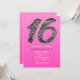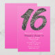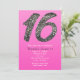 Invitaciones de fiesta de glitter plateado dulce 16 rosa. Personalice para cualquier evento.