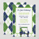 Invitaciones de fiesta de golf de argyle verde y a