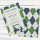 ¡Golpea los links con argyle verde y azul marino! Agrega tu toque personalizado a estas invitaciones. Haz clic en "editar diseño" para cambiar la fuente, el tamaño de la imagen, etc. ¡Transfiere este diseño a los productos de tu elección también! Imagen de portada por RawPixel.com. Visita mi tienda de diseño, PreppyPrint.com, para artículos coordinados, incluyendo suministros para fiestas y notas de agradecimiento.