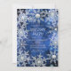 Invitaciones de fiesta de vacaciones azules de copos de nieve de invierno. Personalice para cualquier evento.