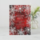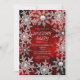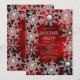 Invitaciones de fiesta de vacaciones rojas copos de nieve de invierno. Personalice para cualquier evento.