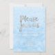 Invitaciones de fiesta glamurosas azul y plateado con brillo. Personalice para cualquier evento.