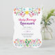 Invitación de fiesta vibrante y bonita con tipografía de estilo manuscrito de moda y flores de arte popular de acuarela, gráficos de pájaros y cactus. Edite el texto para adaptarlo a sus necesidades exactas. Para artículos coincidentes, ediciones personalizadas contacte con la diseñadora LeahG.