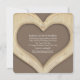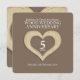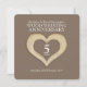 5º aniversario de bodas de madera invitaciones personalizadas marrones. Hermosas invitaciones de fiesta de aniversario de bodas de madera 5º con gráficos impresos con efecto de corazón de madera hechos a mano sobre un fondo marrón. El color de fondo se puede cambiar si es necesario. Personalice con los detalles de su fiesta de bodas de madera. El 5º Aniversario está tradicionalmente asociado con la madera y el corazón simboliza el amor. Gráficos y diseño original del corazón de madera por Sarah Trett www.sarahtrett.com para www.mylittleeden.com