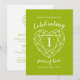 Invitaciones de aniversario de bodas de peridot 1er aniversario con gráficos de arte de línea de efecto de piedra de corazón simple en verde y blanco. Personalice con los detalles de su fiesta de bodas número 1. El 1er aniversario está tradicionalmente asociado con piedras de peridot y el corazón simboliza el amor. Gráficos y diseño de Sarah Trett para www.mylittleedenweddings.com en zazzle.