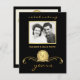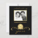 Invitaciones personalizadas para fiesta de aniversario número 50 -- Elegantes acentos dorados vintage sobre fondo negro con marco de foto y monograma clásico antiguo. Agregue su propia foto y personalice el nombre, fecha y detalles para su feliz ocasión. Perfecto para fotos contemporáneas o vintage. Sobres, franqueo y tarjetas de agradecimiento disponibles. **NOTA: Tamaño para tarjetas de invitación PEQUEÑAS de 4,25 x 5,5 pulgadas. Otros tamaños y estilos disponibles en la galería.