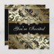 Plantilla elegante de invitación de fiesta de damasco negro y dorado. Esta hermosa invitación de fiesta negra y dorada se personaliza fácilmente para su evento simplemente eligiendo el botón "¡Personalízalo!" para comenzar a agregar los detalles de su evento, estilo de fuente, tamaño y color de fuente, y redacción. Tenga en cuenta que todos los diseños de tarjetas e invitaciones que encontrará en Zazzle son gráficos impresos sin joyas reales, lazos, partes o piezas elevadas, grabadas o agregadas.