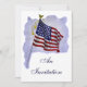 Grabado vintage de una bandera de EE. UU. en rojo, blanco y azul retro, ondeando orgullosamente en un asta con un águila americana y una cuerda con un borlón.