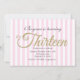 Invitaciones de fiesta rosadas TRECE 13 con brillo dorado.