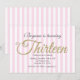 Invitaciones de fiesta rosadas TRECE 13 con brillo