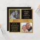 Dorado y negro con 2 fotos -- Cree sus propias invitaciones elegantes y lindas para la fiesta del 50 aniversario de bodas con fotos de "entonces y ahora" -- Personalice el nombre, la fecha y los detalles para su aniversario de bodas de oro o cualquier celebración de aniversario especial. El contexto tradicional y formal se puede personalizar para una redacción más moderna y casual. La inicial monogramada en los corazones brillantes es opcional. Tenga en cuenta que: los adornos decorados son parte de la imagen, NO son reales. Comuníquese con nosotros para personalizar este diseño para otras ocasiones especiales o celebraciones de hitos -- 10, 20, 30, 35, 40, 45, 50, 55, 60, 65. **NOTA: Tamaño para tarjetas de invitación CUADRADAS. Otros tamaños y estilos disponibles.