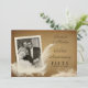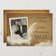 Invitaciones para una fiesta de aniversario número 50 con texto de estilo letterpress vintage retro, fondo de pergamino rústico antiguo y acentuado con una elegante pluma blanca (parte de la imagen, no una pluma real), con inserto de foto. Sube tu foto y agrega los nombres, fecha y detalles. Por favor contáctanos para personalizar este estilo para otras celebraciones importantes. Estampillas y tarjetas de agradecimiento coordinadas disponibles a petición.