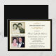 Cree sus propias invitaciones elegantes para la fiesta del 50 aniversario de bodas con dos (2) fotos insertadas y hermosos acentos dorados vintage sobre blanco marfil con borde negro. Tipografía estilo letterpress formal. Elegante, asequible y personalizado de manera única para usted. Agregue sus propias fotos "Entonces y Ahora" y personalice el nombre, la fecha y los detalles para su feliz evento. Puede personalizarse fácilmente para otras ocasiones especiales y celebraciones de hitos. Perfecto para un recuerdo enmarcado que su familia atesorará por siempre. **NOTA: Tamaño para tarjetas de invitación planas pequeñas. Otros tamaños y estilos disponibles. © Teri Francis. Estampillas a juego y tarjetas de agradecimiento disponibles.