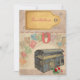 Invitaciones de boda con temática de viajes de estilo vintage con fondo de tronco y sello. Personalizable fácil para que puedas añadir todos tus propios detalles.