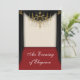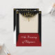Elegante alfombra roja, lujosas cortinas negras con una hermosa araña de oro ornamentada invitación para baile de graduación escolar.