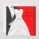 Invitaciones de fiesta de etiqueta negra con vestido de baile blanco marfil y rojo
