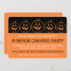 Invitación a la fiesta de despedida de calabaza de calabaza de calabaza de Halloween (Naranja/negro)... Estas divertidas y festivas invitaciones de Halloween son la manera perfecta de invitar a amigos y familiares a un fiesta tallador de calabaza de Halloween. Personalizable total...sólo tienes que introducir tu información y tus invitaciones de Halloween están listas para ser enviadas. El diseño incluye una serie de bonitas siluetas de calabaza de linterna de jack o'. Vea WindyCityStationery.com para nuestra línea completa de "Jack O' Lantern Pumpkin Silhouette" invitaciones, así como sellos postales, etiquetas, pegatinas, tarjetas de notas y más.