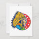 Un diseño maravilloso de un jefe indio americano. Este diseño presenta sólo la cabeza en la cabeza en el frente de cabeza de un jefe indio y se ve realmente genial. El jefe está puesto en un fondo rojo que tiene algunos comienzos en él. Un gran diseño de un jefe indio que se ve genial en estas invitaciones