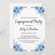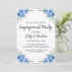 Celebra tu compromiso con esta elegante invitación floral azul marino. El diseño floral acuático presenta flores y follaje delicados, perfecto para una fiesta de compromiso de otoño. El fondo azul marino aporta un toque de sofisticación y clase.