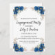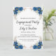 Celebra tu compromiso con esta elegante invitación floral azul marino. El diseño floral acuático presenta flores y follaje delicados, perfecto para una fiesta de compromiso de otoño. El fondo azul marino aporta un toque de sofisticación y clase.