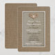 Esta invitación a la fiesta de compromiso presenta un corazón como punto focal en una burpía de color claro y color tostado con un marco blanco y una bupía de color canela más oscura que la rodea. Todos los detalles de tu fiesta de compromiso se pueden personalizar para hacer una invitación de fiesta de compromiso con una apariencia única. Copyright henishouseofpaper