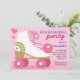 Invitaciones rosadas de la fiesta de cumpleaños del patinaje sobre ruedas con los arco iris y los corazones.