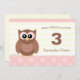 Invitaciones dulces de la fiesta de cumpleaños del búho del bebé en galones y lunares rosados y amarillos. Modifique el texto para requisitos particulares para crear sus propias invitaciones de la fiesta de cumpleaños del kawaii de DIY. ¡Lindo estupendo! ©MegaKawaii™