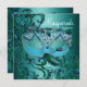 Elegantes invitaciones para una fiesta de máscaras azul verde azulado. Esta hermosa invitación a una fiesta de máscaras verde jade y azul verde azulado se personaliza fácilmente para tu evento simplemente eligiendo el botón "Personalizar it!" para empezar a añadir los detalles del evento, estilo de fuente, tamaño de fuente y color, y redacción. Por favor, tenga en cuenta que todos los postes de pastel, tarjetas y diseños de invitación que encontrarás en Zazzle son gráficos impresos sin joyas, arcos, arcos, grabados en relieve ni piezas ni piezas añadidas.