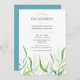 Estas invitaciones a fiestas de compromiso incluyen acuarela oceánica botánica. Utilice los campos de plantilla para agregar los detalles del personalizado. Solicite tarjetas impresas en línea o invitaciones imprimibles. Una elección elegante para una celebración con temas de jardín. Para ver más diseños como este visite www.zazzle.com/dotellabelle Arte y diseño de acuarelas únicas de Victoria Grigaliunas de Do Tell A Belle.