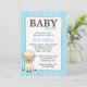 Invitaciones azules de Baby Shower del cordero. Un ilustracion adorable del cordero del bebé se ofrece en esta invitación clásica de la fiesta de bienvenida al bebé. ¡Perfeccione para un niño pequeño en la manera! Doodles de Scrappin del © de los gráficos en www.scrappindoodles.com