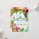 Invitaciones de Luau con hermosas acuarelas, loro tropical y flamencos en un colorido fondo de flores tropicales y hojas. Esta invitación de fiesta de cumpleaños de luau tropical se personaliza fácilmente para tu evento, simplemente añadiendo tus detalles. También se puede cambiar el color de fondo en la parte delantera de esta bonita invitación a acuarela.