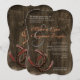 Invitaciones de madera de la boda del país del granero rústico de las herraduras con dos herraduras en la esquina más baja en un fondo de la madera apenada del granero. Las letras son grises claras con el nombre de novia y del novio en un color coralino.