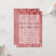 Esta invitación rústica del boda es perfecta para cualquier boda del país. Ofrece un fondo de madera del diseño del granero rojo rústico a ambos lados de la invitación.