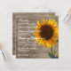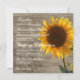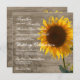 Invitaciones rústicas de la boda del país del país del cuadrado de madera rústico del girasol con un girasol colorido brillante en el lado de la invitación en un fondo de madera apenado del diseño que le da una mirada rústica. Éstos son perfectos para un boda temático del girasol o cualquier boda rústico del país.