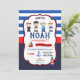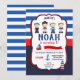 Estas grandes Tarjetas de Invitación de Marineritos presentan niños marineros y todo lo relacionado con el mar como un bote, un faro y un ancla con combinaciones de colores azul, rojo y azul marino. Personalice esta increíble invitación de Marineritos con el nombre de su hijo, edad y detalles de la fiesta de manera fácil y rápida, simplemente presione el botón personalizar para reorganizar y dar formato al estilo y ubicación del texto. Incluye un diseño de reverso de invitación coincidente.