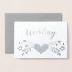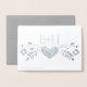 Invitaciones de matrimonio a la tipografía floral de Relieve metalizado plateado real. Tipografía interior blanca.