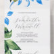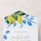 Estas invitaciones a bodas con tarjeta rsvp cuentan con limones de acuarela botánica y vegetación con adornos azules. Una elección elegante para una foca y para enviar o plegar el matrimonio invita. Para ver ideas de invitación a bodas más asequibles visite www.zazzle.com/dotellabelle Arte y diseño de limón de color agua único por Victoria Grigaliunas de Do Tell A Belle.