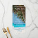 Invitaciones personalizadas de menú de boda con palmeras en la playa con texto personalizable