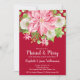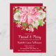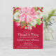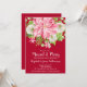 Las invitaciones de Navidad para el brunch y el champán después de la boda con tema de vacaciones de Navidad presentan una gran poinsettia rosa, flores de invierno, pinos y hojas de acebo en un fondo rojo y tus detalles en letra blanca chic. Artículos COINCIDENTES en nuestra tienda.