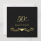 Elegantes invitaciones doradas para la fiesta del 50 aniversario de boda con letra formal y diseño antiguo enrollado -- Personalice el nombre, la fecha y los detalles para su feliz celebración. **NOTA: Tamaño para tarjetas de invitación CUADRADAS -- REQUIERE FRANQUEO ADICIONAL. Otros tamaños y estilos disponibles. Ver sobres y franqueo coincidentes en la galería.