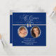 Hermosa invitación de Quinceañera azul real con foto de bebé y actual. Esta invitación de Quinceañera con foto azul marino presenta marcos ovalados elegantes para dos fotos: una de bebé y la otra actual. Personalice esta elegante invitación de Quinceañera con foto azul y blanca agregando sus fotos, detalles del evento, estilo de fuente, tamaño y color de la fuente, y redacción. Tenga en cuenta que todos los diseños de tarjetas e invitaciones que encontrará en Zazzle son gráficos impresos sin joyas, lazos, partes o piezas elevadas, en relieve o agregadas.